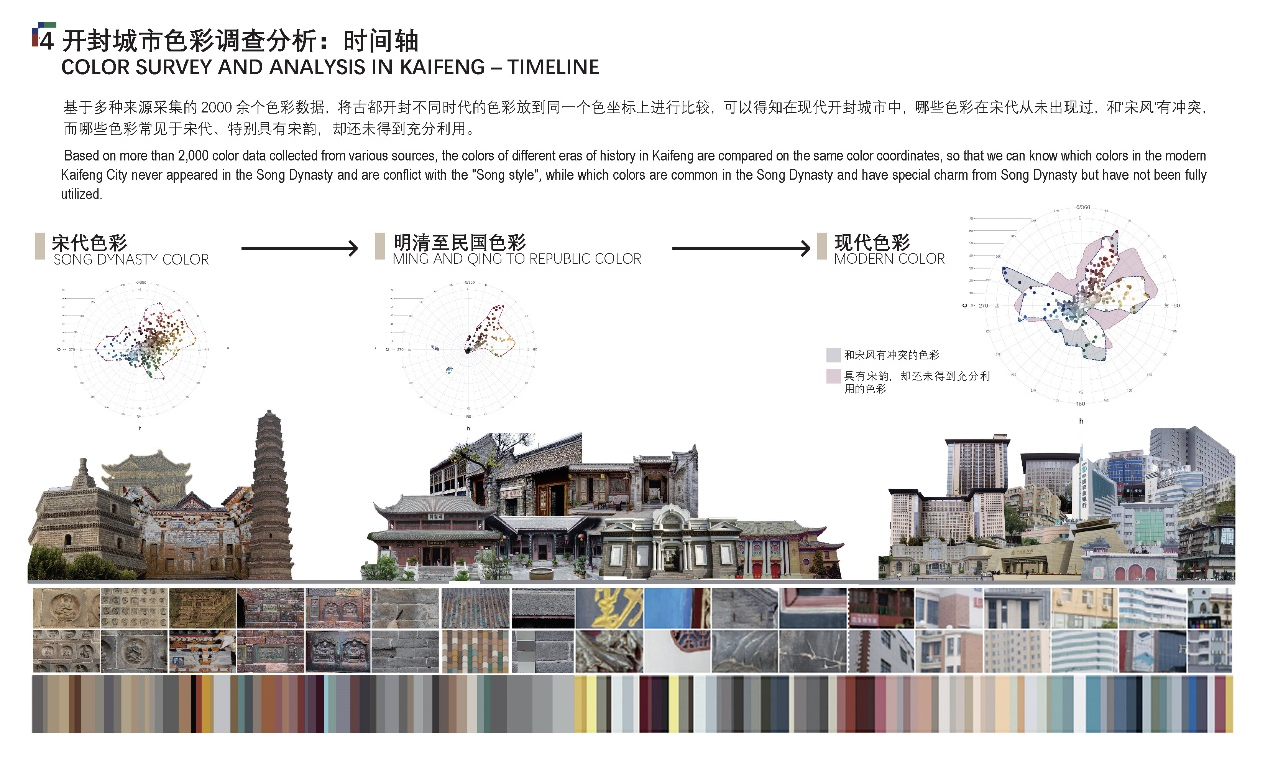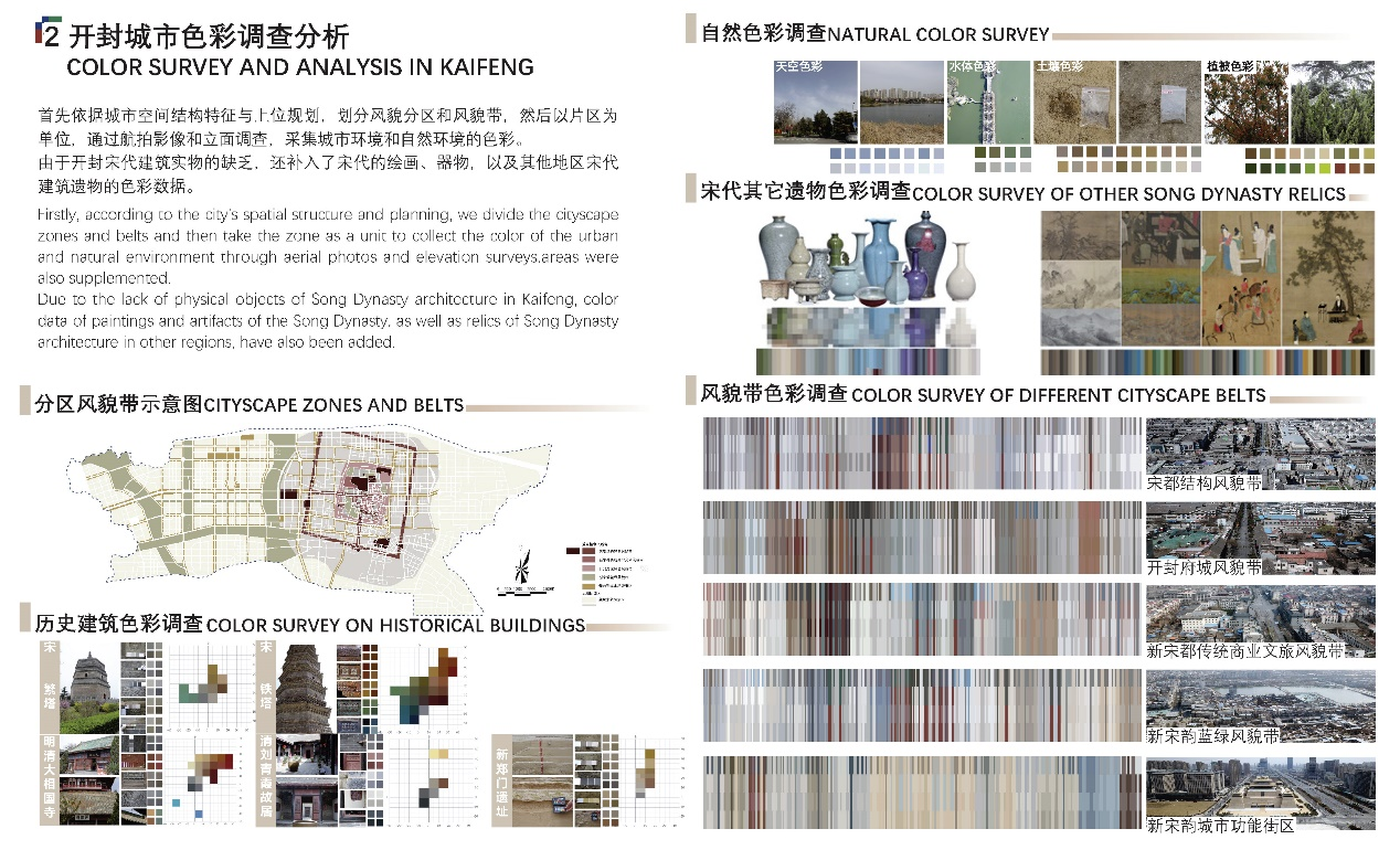 基于团队历史研究和色彩研究的成果积累,本作品经过调查分析、色谱构建与引导性设计,对古都365买球怎么玩_365手机体育app_盒子365靠谱吗文化遗产色彩进行了系统的提取和利用,充分利用城市色彩作为彰显地域文化及时代精神的视觉语言,唤醒“北宋东京”的文化记忆、重塑古都365买球怎么玩_365手机体育app_盒子365靠谱吗的城市风貌形象。大赛评委会评语节录:作品规划设计过程完整,色彩研究方法科学,在重塑宋代色彩风韵、讲好中国故事、树立色彩文化自信方面表现得尤为立场鲜明,成果突出。
